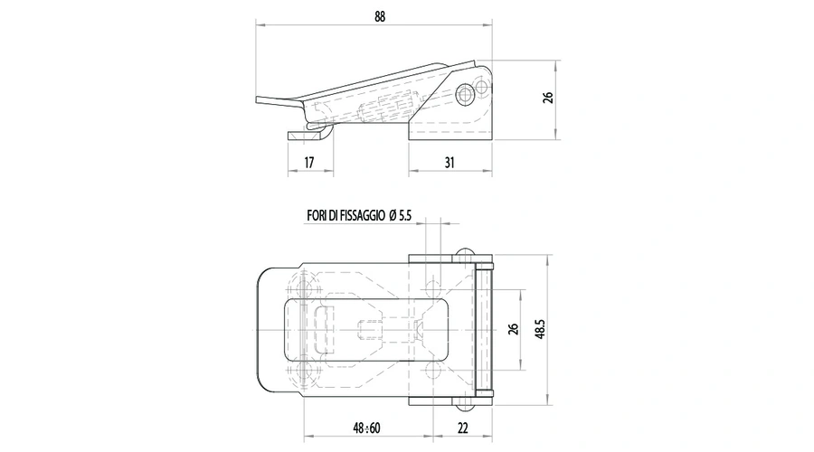 Le chiusure a leva sono realizzate in acciaio DC01 (UNI EN 10130) e acciaio inossidabile AISI 304 (UNI EN 10088) con molteplici opzioni di finitura che soddisfano le esigenze specifiche dei diversi ambienti di installazione.
